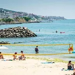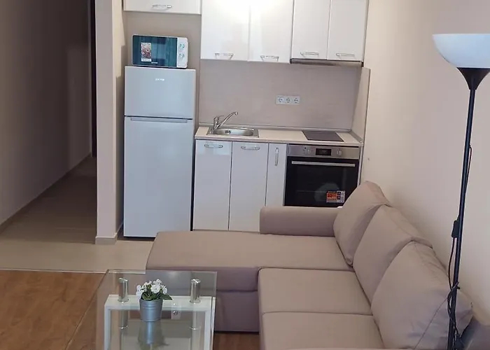 Con instalaciones de spa como una sauna, Apartamento Premier Lux Apartman Sveti Vlas está situado en el distrito Yurta, a una distancia de 4 km de la Discoteca Cacao Beach. Los huéspedes se sumergirán en la máxima relajación en este apartamento frente a la playa de 33 m^2, que cuenta con lujosos servicios como parque acuático, terraza solárium y jardín.